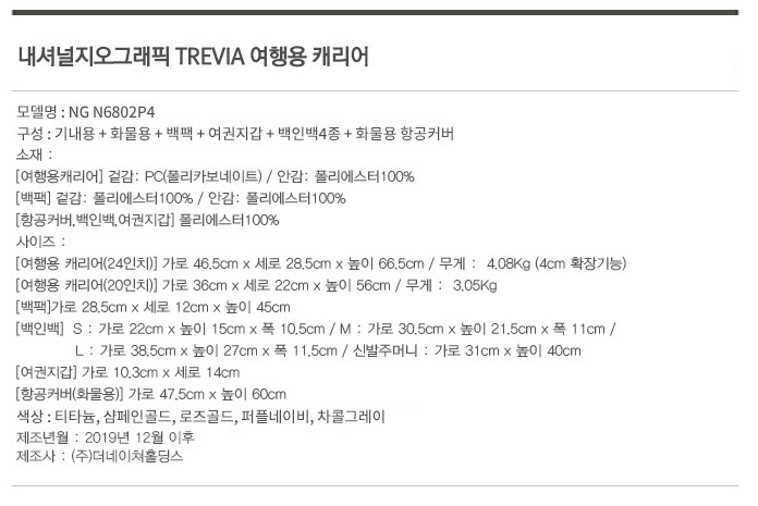 [내셔널 지오그래픽 트레비아 캐리어 세트] 여행용 캐리어 / 캐리어 추천 / PC 캐리어 / 가벼운 캐리어 / 생일선물 추천